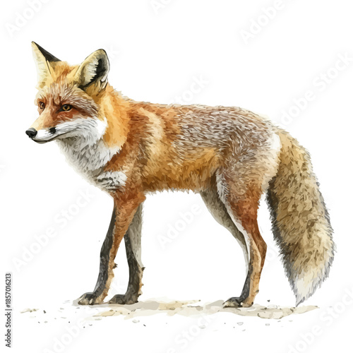 Fototapeta premium Fox, watercolor artwork with intricate patterns and vibrant, isolated on a...