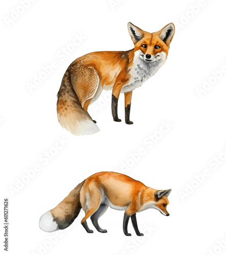 © Hamza, Obraz premium Fox Watercolor Clipart, Transparent Background - Generative Ai