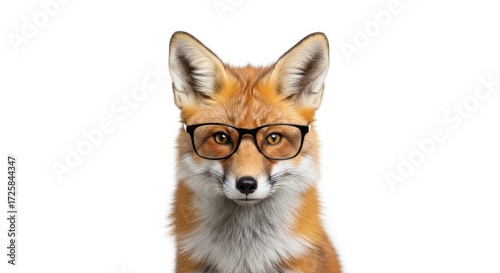 Fototapeta premium fox wearing glasses, spectacles eyewear, on a solid white background
