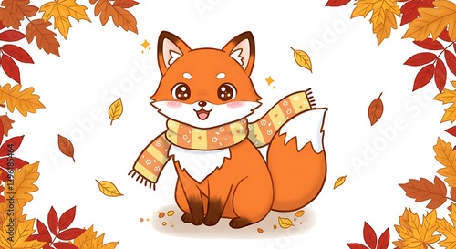 © Isaque Taylor, Fototapeta premium Fox with Autumn Leaves