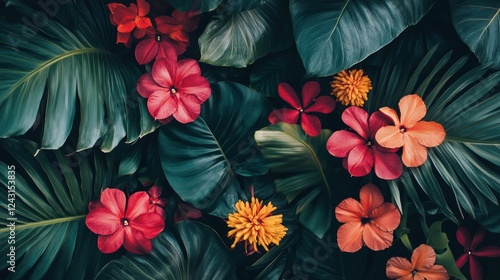 © Артур Комис, Obraz premium foxes and tropical flowers. Selective focus