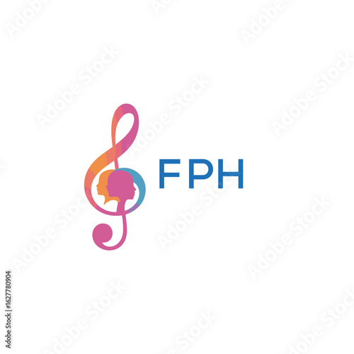 © MDENAMUL, Naklejka premium FPH “Colorful music logo with human faces and treble clef design” FPH Later Logo, “Abstract music school logo with people and melody icon”