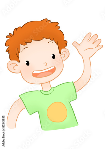 © Mandy, Obraz premium Fröhlicher Junge winkt