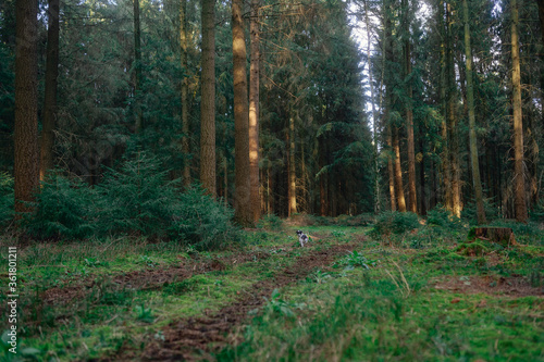© Till Heidrich, Fototapeta premium Frühlingsspaziergang im Wald mit dem Hund
