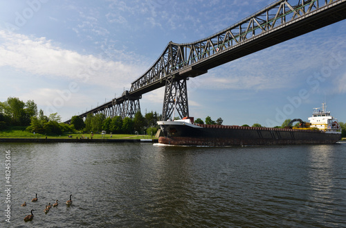Fototapeta premium Frachter unter der Hochbrücke Rendsburg