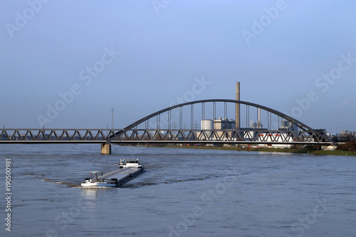 © kristina rütten, Naklejka premium frachtschiff auf dem rhein bei hohem wasserpegel