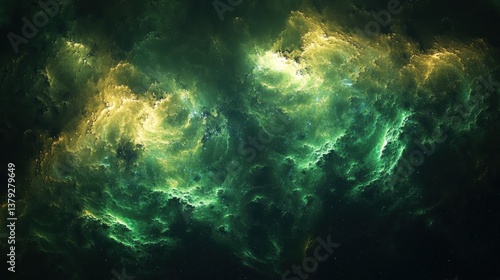 Fototapeta premium Fractal Art Green Yellow Nebula Bioluminescent Patterns Abstract Swirling Texture Digital 3D Rendering