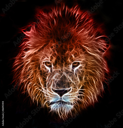 © eranda, Naklejka premium Fractal digital fantasy art of a lion on a isolated background