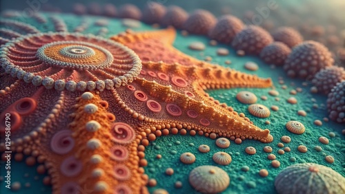 Obraz premium Fractal Starfish Spirals, Textures and Ocean Depths, digital art, 3D...