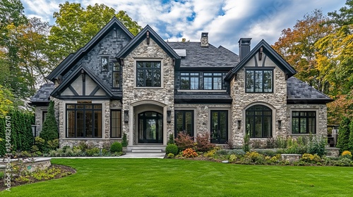 © Mitchell, Obraz premium Fragment of a Stunning Facade of a Recently Constructed Building, Showcasing Modern Architectural Design