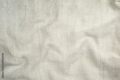 © nndanko, Naklejka premium fragment of a very old linen homespun fabric with waves on the surface