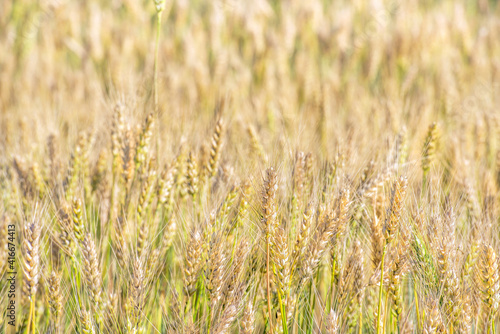 Fototapeta premium Fragment of a wheat field. Spikelets ripen.