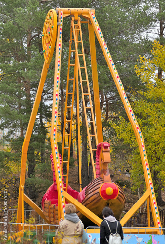 Fototapeta premium Fragment of an amusement park attraction on an autumn day