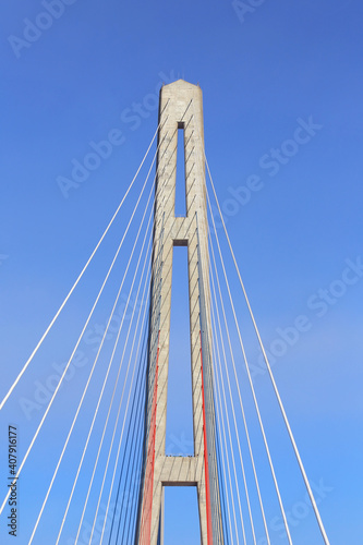 © pingvin57, Naklejka premium Fragment of cable-stayed bridge