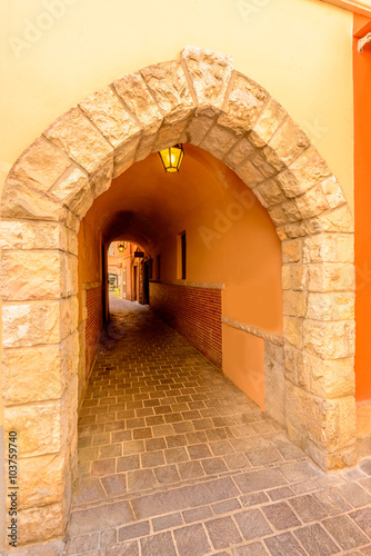 Fototapeta premium Fragment of Monaco Village, Monaco, France. Narrow streets in Old Town.
