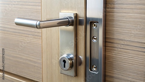 © yuwaree, Obraz premium Fragment of steel door with handle and locks