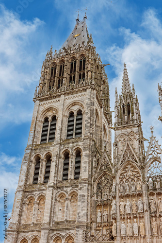 Fototapeta premium Fragment of the facade. The Gothic Style Cathedral of Rouen, Notre-Dame de l'Assomption Cathedral, Rouen, Normandy, France