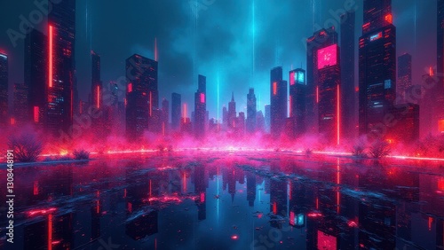 © Nima, Fototapeta premium Fragmented digital visuals, A glowing digital cyberscape shatters into geometric shards with pulsating neon fractals and bright electric hues spilli