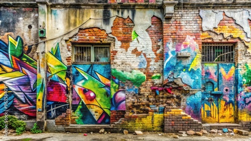 © Collection, Fototapeta premium Fragmented graffiti drawings on old wall with paint stains in street art style background texture