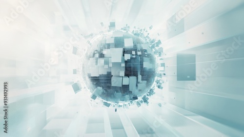 Obraz premium Fragmented Sphere with Grid Pattern in 3D Art
