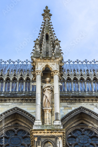 Naklejka premium Fragments of northern portal of Notre-Dame de Reims cathedral (Our Lady of...
