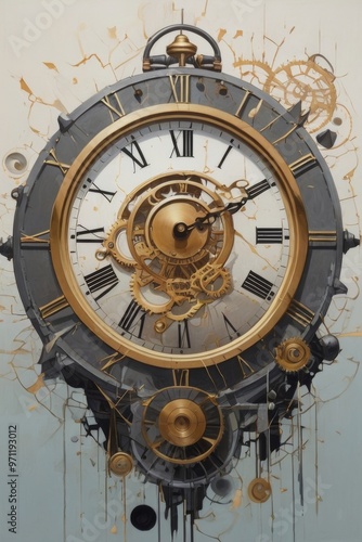 © Re-illustrate, Obraz premium Fragments of Time: A Surreal Exploration of a Shattered Clock