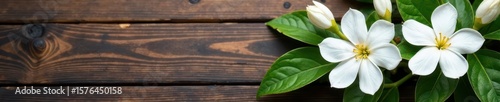 Fototapeta premium Fragrant jasmine blossoms in a rustic wooden corner arrangement , wood, tranquil, vintage