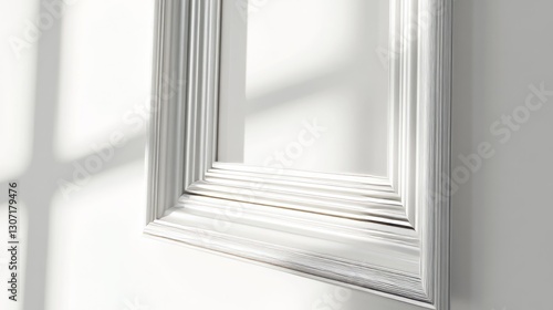 Obraz premium frame, close-up, white solid background, polished frame with glowing edges, sharp focus on subtle details.