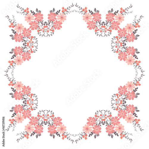 Fototapeta premium Frame from wild charming flowers. Greeting card template. Design artwork for the poster, invitation, calendars. Place for text.