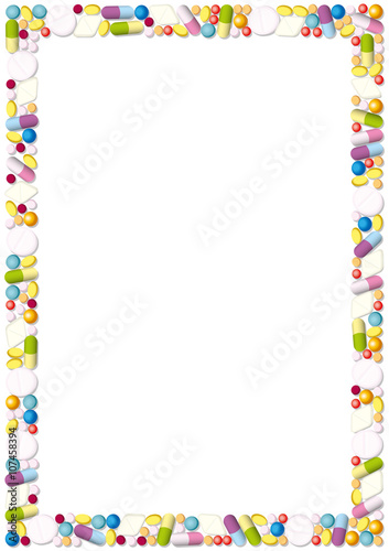 © Peter Hermes Furian, Obraz premium Frame made of pills, tablets and capsules. Isolated vector illustration over white background.