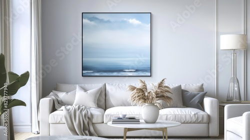 © JK_kyoto, Fototapeta premium Frame mockup, a serene seascape painting inspires tranquility in any room