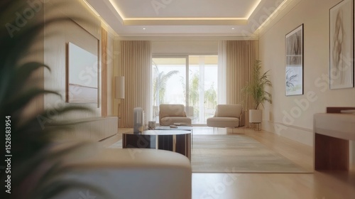 © Zahid, Naklejka premium Frame mockup ISO A paper size Living room wall poster mockup Interior mockup with house background Modern interior design 3D render
