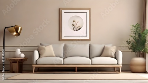 © Ammar, Fototapeta premium Frame mockup with 3D representation of interior of a modern, classic living room