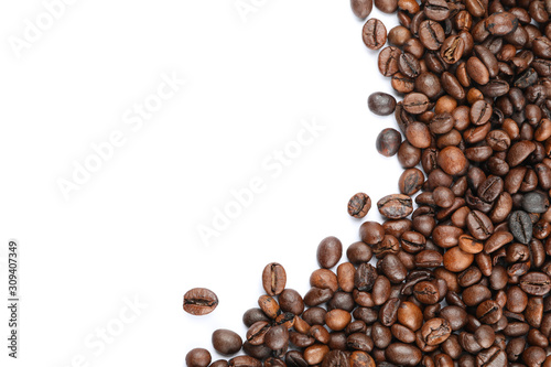 © Atlas, Naklejka premium Frame of coffee beans isolated on white background, close up