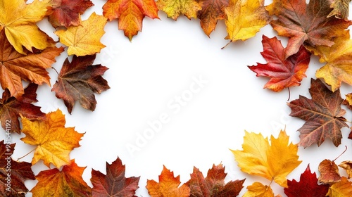 Fototapeta premium frame of colorful autumn leaves isolated on white background with generative ai