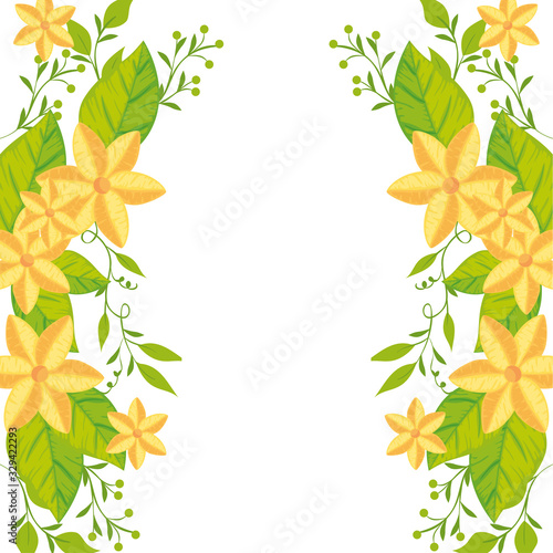 Naklejka premium frame of cute flowers with leafs isolated icon vector illustration design