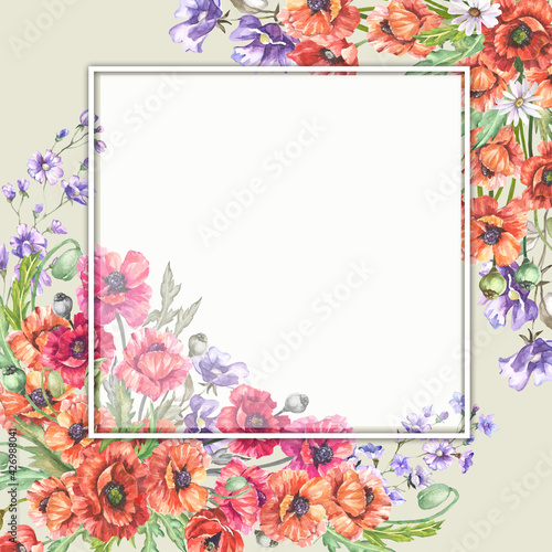 Obraz premium frame of flowers.watercolor poppies