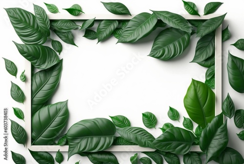 © LivroomStudio, Naklejka premium Frame of green leaves on a white background. lay flat. Generative AI