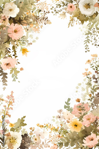 © paul, Obraz premium Frame of green leaves, vegetables, flowers space for Text