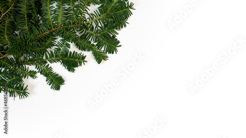 Obraz premium Frame of green pine branch isolated on white background and space for text.