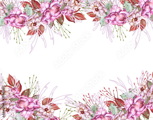 © luchioly, Fototapeta premium Frame of roses. Isolated on white background.