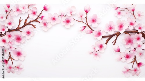 Naklejka premium Frame of Sakura Cherry Blossoms Spring flower of Japan white background