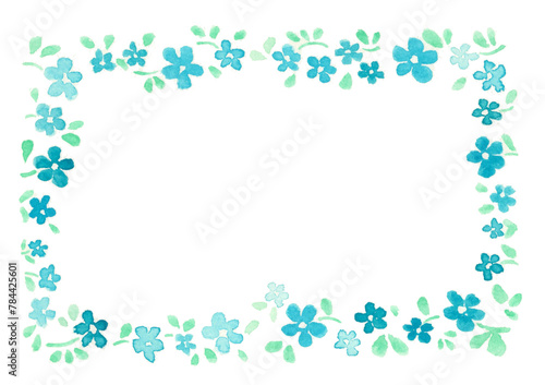 © Mayokarami, Obraz premium Frame with blue flowers. Watercolor. White color background.