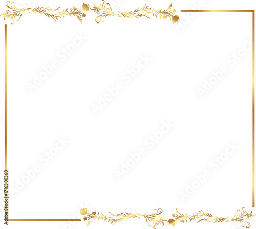 © gorito, Obraz premium frame with leaves gold border Golden Border Warm Color Frame