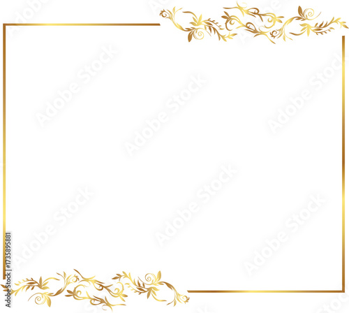 © gorito, Obraz premium frame with leaves gold border Golden Border Warm Color Frame