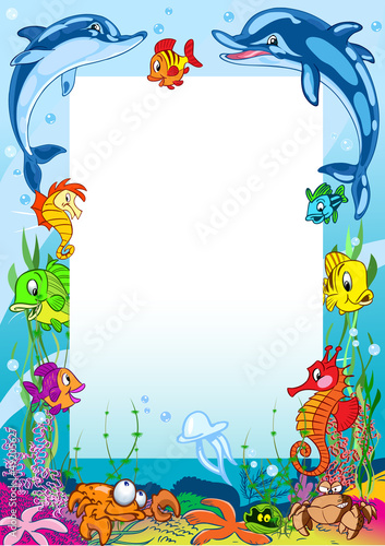Obraz premium Frame with various sea animals