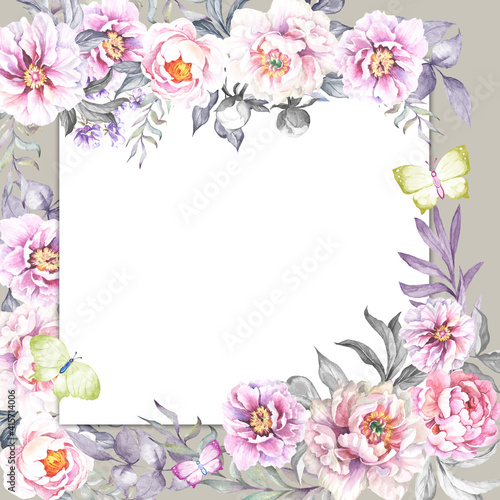 © OLGA, Fototapeta premium frame with watercolor flowers