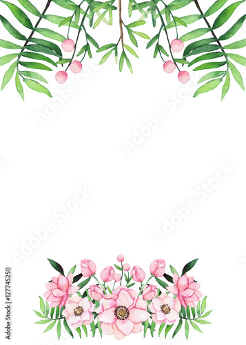 © Nebula Cordata, Fototapeta premium Frame with Watercolor Shabby Chic Bouquet and Green Fern