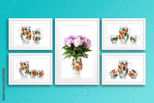 © Sun-flower, Obraz premium Frames collage with ornamental dishes posters, interior decor mock up