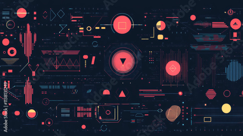 © Sahraya, Obraz premium Frames HUD futuristic style. Abstract geometric patterns. Futuristic technology icons, digital technology on a dark blue background.